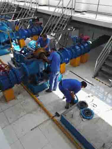 三棵樹泵站在我們公司區域供水工程中有著舉足輕重的地位,近日,三棵樹泵站4#機組出現漏水現象,經現場觀察確認為水泵機械密封損壞導致漏水。機電部迅速組織人員火速趕往現場搶修,目前4#機組已投入使用,運行正常,緩解了三棵樹泵站的供水壓力。