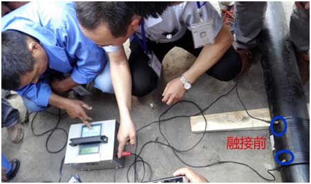 (圖2:工程公司人員配合廠家技術(shù)員做融接前準備工作)
