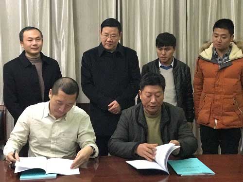 (圖1:聯合水務供水業務副總裁劉猛和咸寧思源水務有限公司范華山、范棟良簽約)