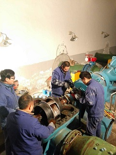 為了減少維修時間,機電設(shè)備部維修人員提前將晚上需要使用的工具以及材料準(zhǔn)備齊全,并將東西送至駱馬湖取水泵站,因為夜里泵房能見度低,不宜于機組維修,所以白天在維修區(qū)域架設(shè)了兩盞射燈,夜里十點半機電設(shè)備部維修人員準(zhǔn)時到達現(xiàn)場,歷時6小時,克服勞累、寒冷及各種困難,在早上5點鐘完成機組的維修,保障白天的供水安全。