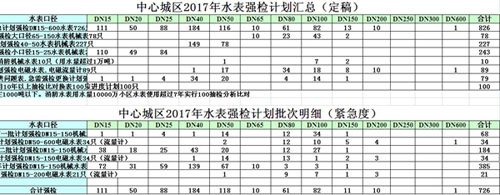 2017年計劃強檢DN15-600水表726只,2017水表強檢工作由管網部負責具體實施,客戶服務部、水表檢定中心全力配合共同監督執行。