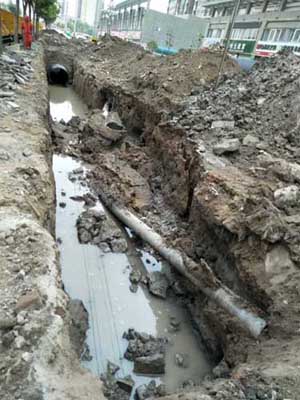 5月23日下午16時(shí)35分,客服大廳接到客戶報(bào)修,“實(shí)小”旁邊衛(wèi)生路管道漏水。管網(wǎng)部接到大廳派發(fā)的單據(jù)后,維修員郭軍立即趕赴現(xiàn)場(chǎng)查看管道損壞的情況。因市政施工改造DN500下水管道,導(dǎo)致土方坍塌致使我公司DN200主管道折斷。考慮到該處主管道影響面積較廣,包括“綠城庭院”、“華潤(rùn)景城”、南菜市等1000多戶客戶用水。管網(wǎng)部立即增派人員,合理分工,調(diào)派挖機(jī)、水泵、發(fā)電機(jī)等搶修工具,同時(shí)做好停水通知工作。晚上23時(shí)左右搶修完畢。