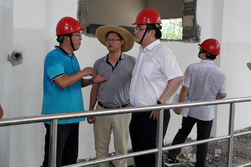 7月25日下午,聯合水務集團副總裁劉猛先生蒞臨宿遷銀控自來水有限公司第二水廠三期工程施工現場檢查工作,集團生產運營總監王歡、建設管理部副總經理葉峰及項目部相關人員全程陪同。