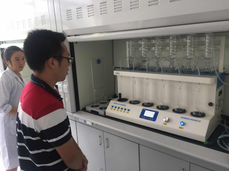 8月21日,水檢公司新購置的全自動液液萃取儀,自動蒸餾裝置已經到貨。廠家工程師已于21日上午到達公司,并開始安裝,下午儀器已經安裝完畢,工程師對我部門員工進行了安全培訓以及儀器使用培訓。