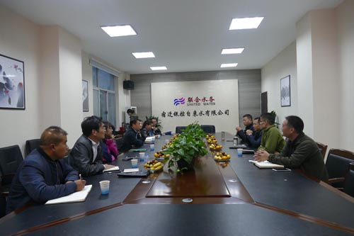 下午,彭董一行自徐州輾轉(zhuǎn)到達(dá)宿遷銀控自來水有限公司第二水廠,曾真總經(jīng)理、陳少軍副總經(jīng)理在辦公大樓前熱情迎接。雙方直接來到二樓會(huì)議室座談交流,共商發(fā)展大計(jì)。暮色已深,秉燭夜談,敞開心扉,暢所欲言。