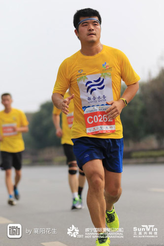 一開始跑步簡單的是想減肥,早上或者晚上跑個3公里,跑完很舒服。后來距離漸漸加長到5公里、8公里、10公里,越跑越想跑,非常迷戀淌汗的感覺,特別是夏天時,跑到全身濕透了再干,然后又濕透。某天在手機上看到說汗液里含有一種物質能使人身心愉悅,原來是這樣啊。巧的是,集團這時組織參加咸寧馬拉松,于是我就報名來了。