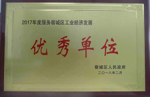 (圖:2017年度服務宿城區工業經濟發展“優秀單位”榮譽獎牌)