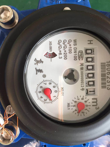 水表外觀看似簡單,其實信息非常多。水表外觀上應標有制造商名稱,注冊商標、流向箭頭、公稱口徑、計量等級、計量標記、制造日期和編號等標志;并附有產品合格證和產品使用說明書,水表的計量單位為m³。準確度等級如果不是2級應標明。在水表指示裝置上分別標注Q3、Q2、Q1、R字樣,字樣分別表示水表常用流量、分界流量、、最小流量及水表比值水表,通過R=Q3/Q1的比值換算流量值,Q2/Q1的比值(當不為1.6時應注明)。水表外觀不應有明顯缺陷,度盤上不應有擦傷,劃痕,裂紋及其影響讀數的弊病,表玻璃不應有妨礙讀數的缺陷。水表的指示裝置可用指針式,字輪式或指針,字輪組合式,指針應順時針方向轉動。指針尖的寬度不應超過分格間距的1/4,且不大于0.5mm,字輪數字的實際高度或可見高度應不小于4mm,且數字應向上移動。水表的指示裝置讀數方位須用透明材料保護,水表上應有有效的封印。