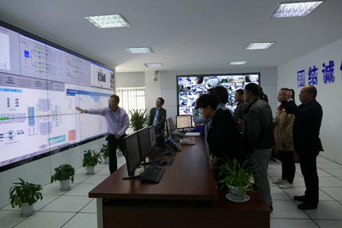 座談會結束后,山西稷山同仁一行來到宿遷銀控自來水有限公司第二水廠實地參觀了制水生產廠區、調度中心、水質檢測中心、駱馬湖原水泵站、河湖連通原水泵站等,他們對宿遷銀控自來水有限公司規范的管理、先進的制水工藝、科學的供水調度、嚴密的監控安防系統給予了高度贊揚,認為這是他們前進的方向。曾真總經理表示,發展無止境,大家互相溝通交流,互為借鑒,緊跟聯合水務集團的發展步伐,爭取取得更好業績。