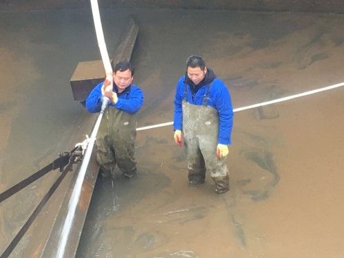 近日,運行人員在日常生產巡檢中發現,二沉池刮泥機未正常運行走動,該設備主要作用是排除沉降在池底的污泥和撇除池面的浮渣,以減少污泥的體積,提高污泥濃度,將濃縮后污泥排除池外。對后續生化池滿足好氧微生物所需要的氧量以及污水與活性污泥充分接觸的混合條件起到重要性作用。耿車廠所使用刮泥機屬于中心傳動濃縮刮泥機。它主要由大梁及攔桿、傳動裝置、穩流筒、主軸、刮泥裝置、水下軸承等組成。它的優點是能進一步分離濃縮池污泥中的自由水分,目前廣泛用于工業污水廠,在生產過程中起到一個承上啟下的作用。