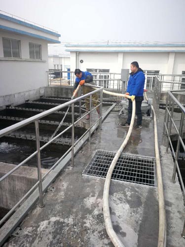 本次機電部在運行配合下,對污水廠斜管進行定期沖刷,首先是高效沉淀池停止進水,其次將池體內(nèi)沉淀泥水放空,最后利用高壓水槍對池體協(xié)管進行沖洗。為不影響生產(chǎn),機電部全力協(xié)作,最終完成斜管沖洗工作,從現(xiàn)在的運行情況觀察,沉淀池運行良好。