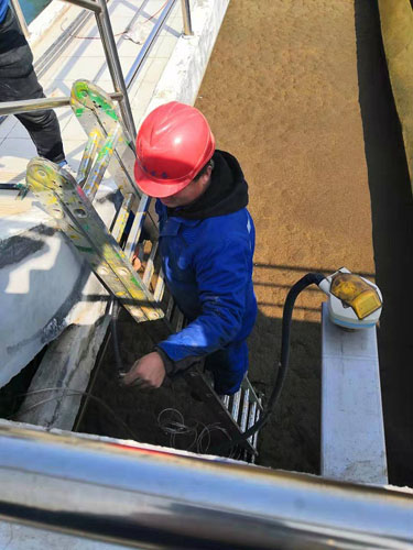 還有我們的老大難問題,就是二水廠砂濾池氣管破損漏氣。因為前期氣管采用的是暗管,氣管更換難度大,還有在水池里面不好操作,氣管老化嚴重,之前出現過因氣管老化,氣管漏氣斷裂等問題。所以這個星期我們制定改造計劃對砂濾池氣管進行更換,和制水部協商一下,先把一個水池水放干,我們下到水池里工作,一個一個更換,對之前老化氣管全部更換成新的氣管,我們采用新的穿線管,對所以暗管里的氣管進行更換,保障在今年的高峰供水中不出現問題。