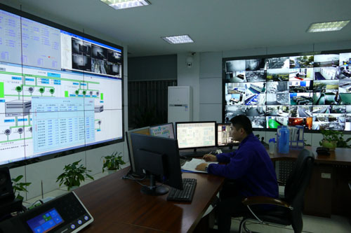 (圖3:供水調度人員專注于液晶顯示屏的數據變化)