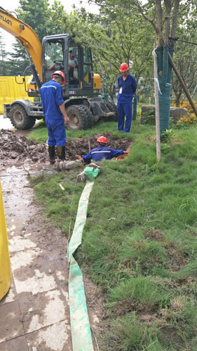 (圖4:管網人員趟泥涉水正在搶修)