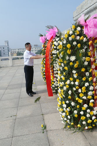在“宿北大戰(zhàn)”紀(jì)念碑前,陳毅元帥題寫的遒勁的“宿北大戰(zhàn)馬陵山革命烈士紀(jì)念塔”14個(gè)大字,金光閃爍。黨委組織委員杜愛軍同志帶領(lǐng)全體黨員重溫入黨誓詞。大家舉起右拳,面向黨旗莊嚴(yán)宣誓,對(duì)黨忠誠、永不叛黨。通過重溫入黨誓詞,讓全體黨員喚起了入黨時(shí)的鄭重承諾,也讓全體黨員的思想得到了進(jìn)一步升華。黨委書記曾真同志代表全體黨員進(jìn)行表態(tài),要時(shí)刻保持黨的優(yōu)良傳統(tǒng)和作風(fēng),勇于擔(dān)當(dāng)、積極作為,展現(xiàn)新時(shí)代黨員形象,為宿遷供水事業(yè)的發(fā)展和生態(tài)文明建設(shè)做出更大的貢獻(xiàn)。全體黨員向“宿北大戰(zhàn)”紀(jì)念碑進(jìn)獻(xiàn)花藍(lán),并向?yàn)橹袊夥攀聵I(yè)獻(xiàn)出生命的戰(zhàn)斗英烈三鞠躬。