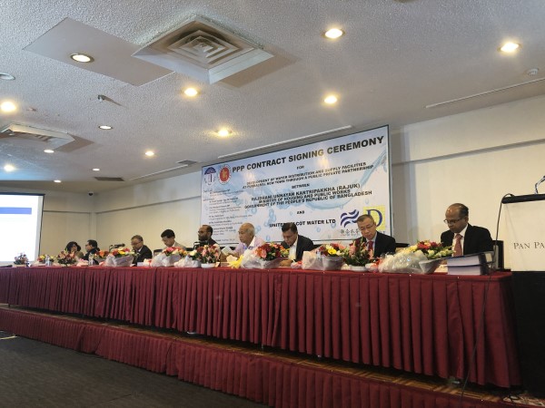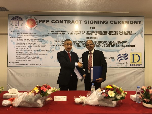 2019年11月11日,孟加拉國(guó)第一個(gè)供水PPP項(xiàng)目—孟加拉國(guó)首都達(dá)卡市Purbachal新城供水及配水設(shè)施開發(fā)PPP項(xiàng)目簽約儀式在達(dá)卡市隆重舉行。該項(xiàng)目由聯(lián)合水務(wù)集團(tuán)與孟加拉Delcot集團(tuán)聯(lián)合投資建設(shè)并運(yùn)營(yíng),設(shè)計(jì)供水能力為34萬噸/日,將為Purbachal新城24平方公里內(nèi)的160萬居民提供優(yōu)質(zhì)供水服務(wù),特許經(jīng)營(yíng)期限為15年。