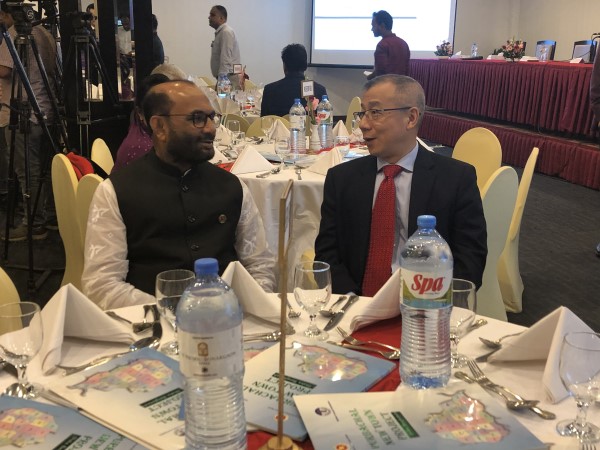 圖:孟加拉國(guó)住建部部長(zhǎng)Rezaul Karim先生和聯(lián)合水務(wù)集團(tuán)董事長(zhǎng)俞偉景先生親切交談