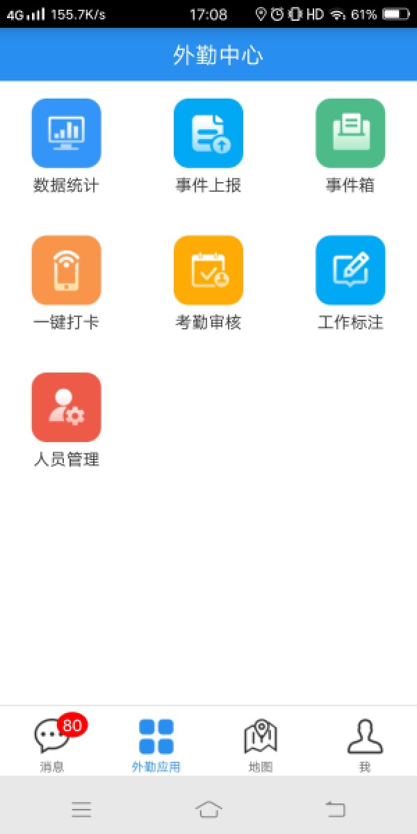 三、移動M/S端,為外勤作業人員提供的手機終端服務,內含定位、查詢、檢索、量算、目的地導航,一件打卡等通用功能,此外系統可在線監測外勤人員實時位置狀態并可回放歷史軌跡,同時可支持事件上報、事件接受、事件發派處理及事件統計。